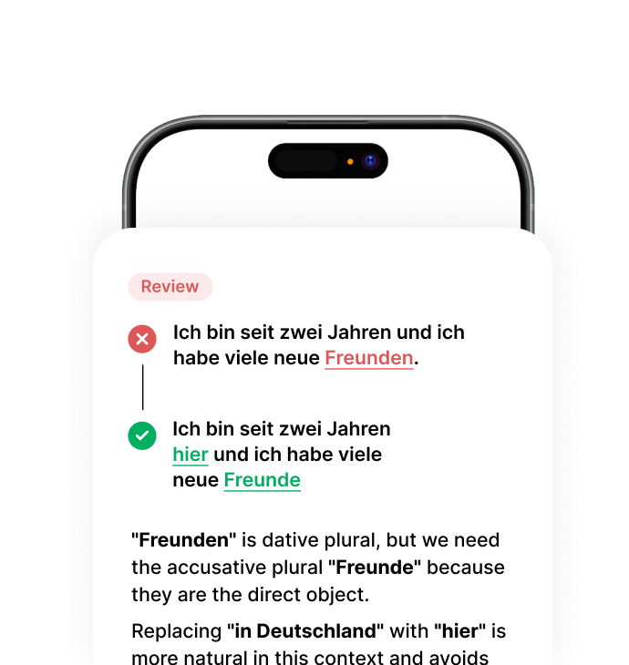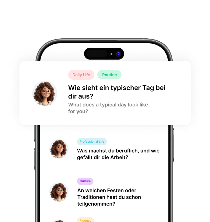 Practice everyday German conversations with AI tutors that help you sound more natural and confident – from casual chats to job interviews.